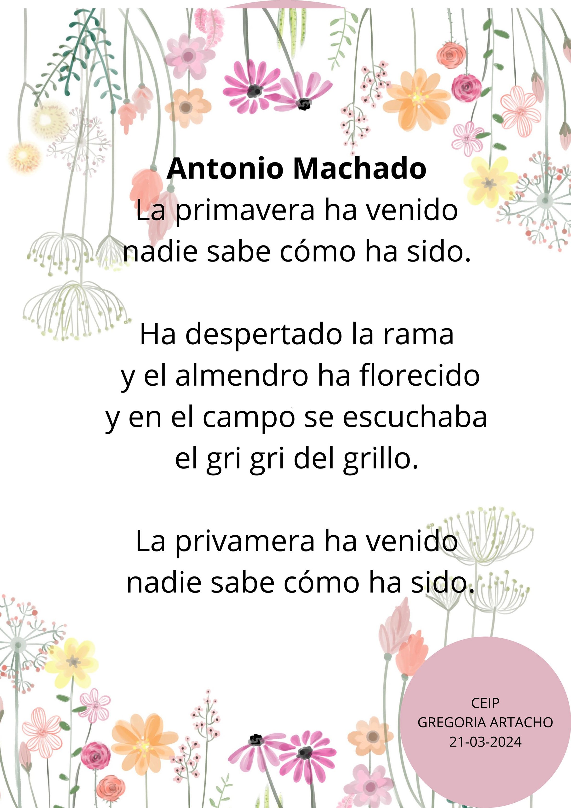 Retomamos los poemas después de Semana Santa. Esta vez son los alumnos y alumnas de 3ºA los que de manera conjunta han querido regalarnos un poema. pinchar aquí