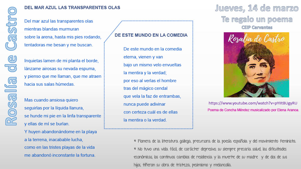 Además también os dejamos como novedad el poema cantado de la mano del grupo de música "El Tendere" al final del artículo. Esperamos que os gusten los tres formatos de nuestro poema de la semana.